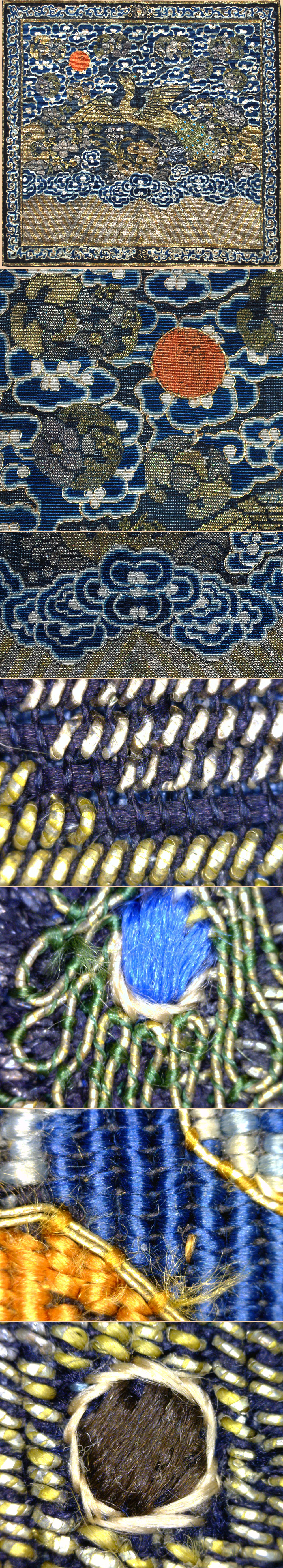 A Very Fine Antique Chinese Silk & Gold Embroidery Rank Badge