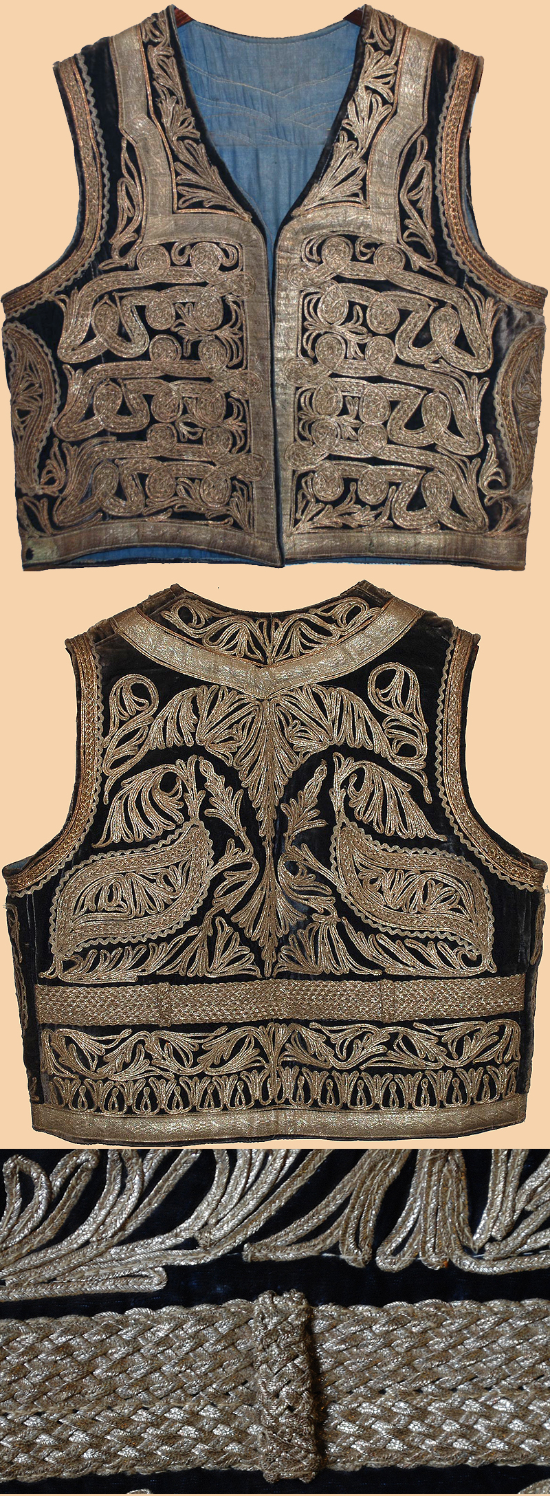 Antique Turkish Velvet Vest Silver Embroidery on Silk Velvet Ottoman Dynasty 1453-1922A.D