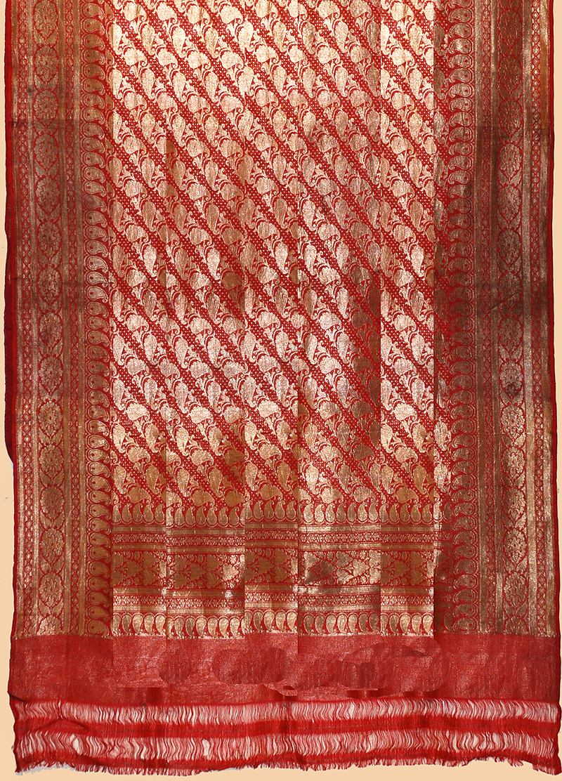 Antique Indian Sari Silk Brocade with Gold Thread 1800 - 1900 A.D Size 224" x 43" Size 570 X 110cm