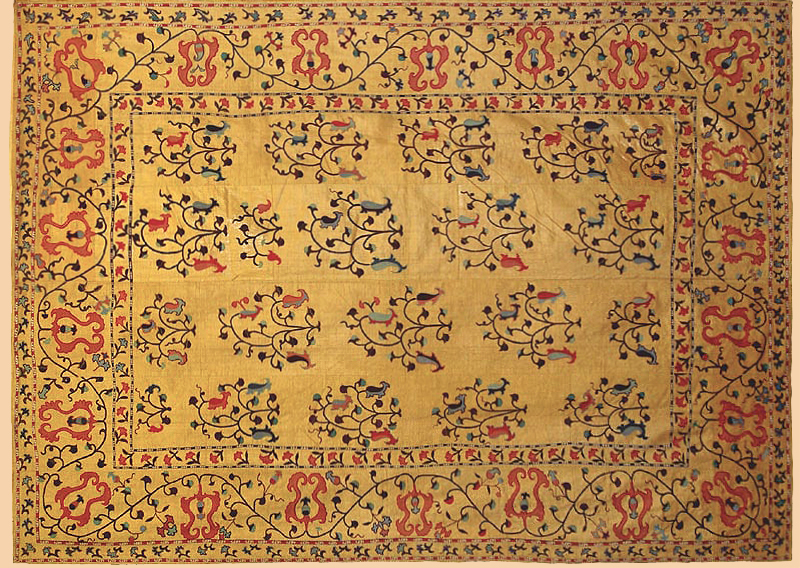 Antique Central Asian Suzani. Silk Embroidery on Silk