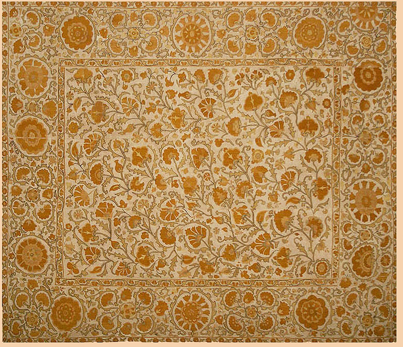 Antique Central Asian Suzani. Silk Embroidery on Cotton.