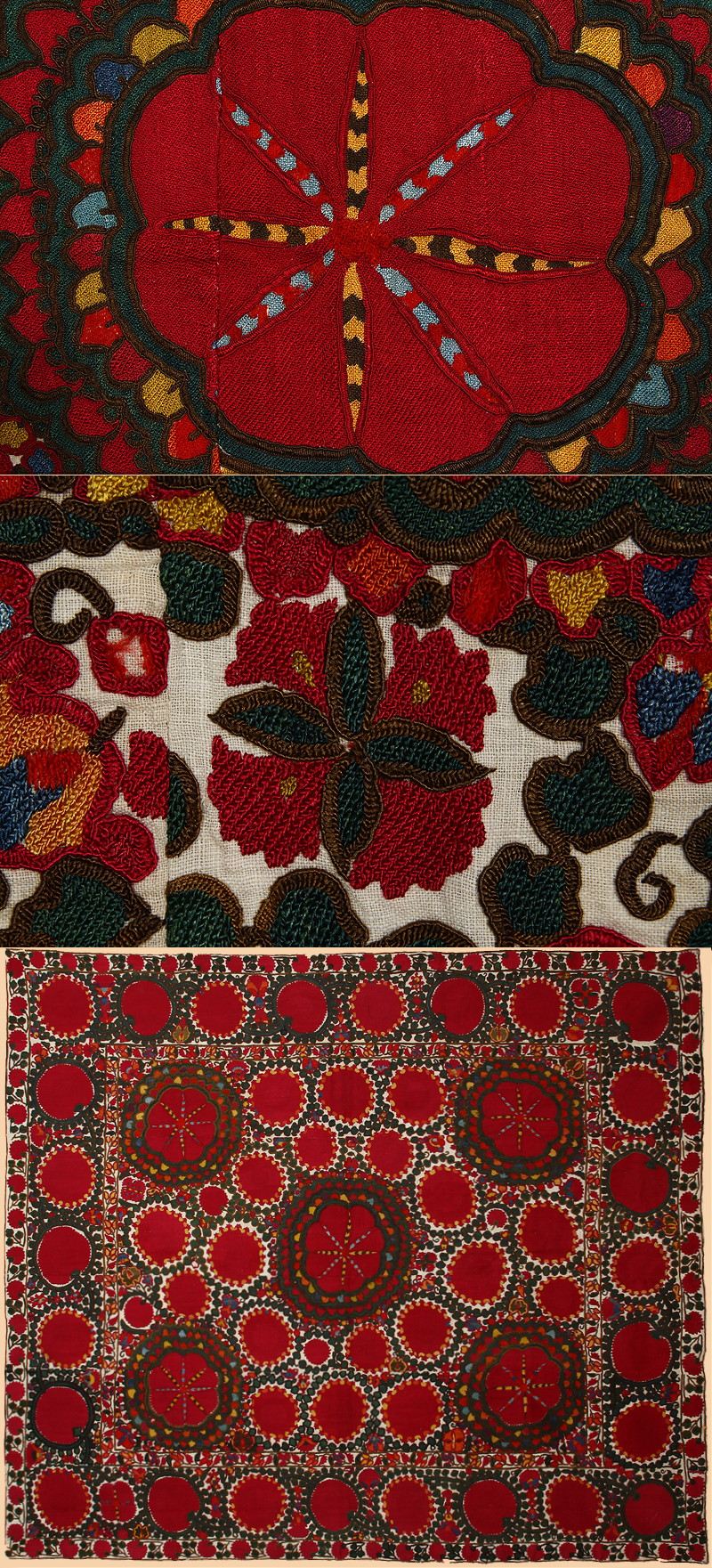 Antique Central Asian Suzani. Silk Embroidery on Cotton