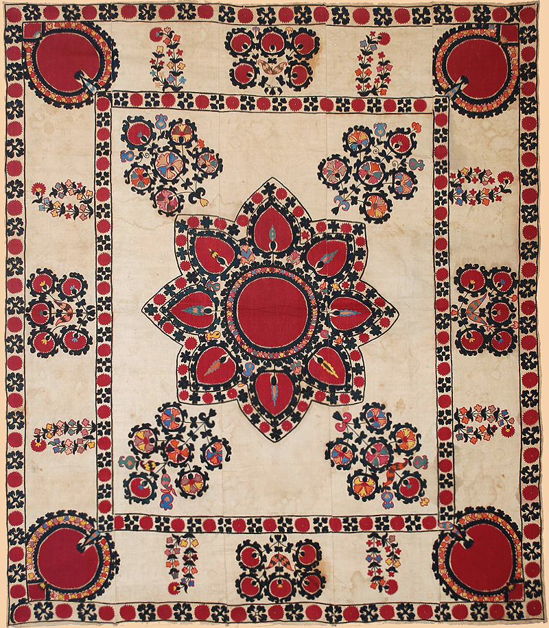 Antique Central Asian Suzani. Silk Embroidery on Cotton