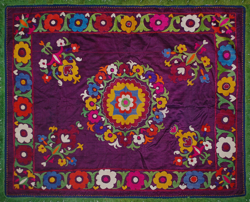 Antique Central Asian Suzani. Silk Embroidery on Silk