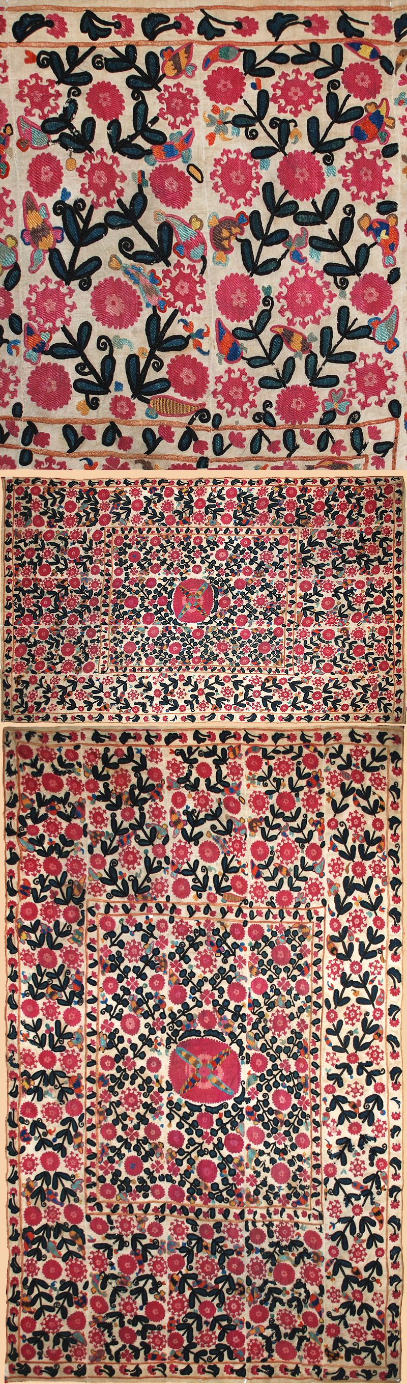 Antique Central Asian Suzani. Silk Embroidery on Cotton