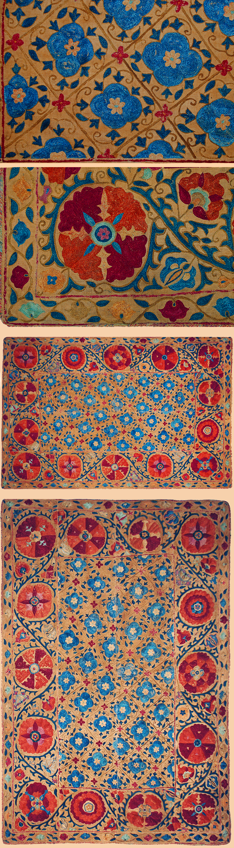 Antique Central Asian Suzani. Silk Embroidery on Cotton