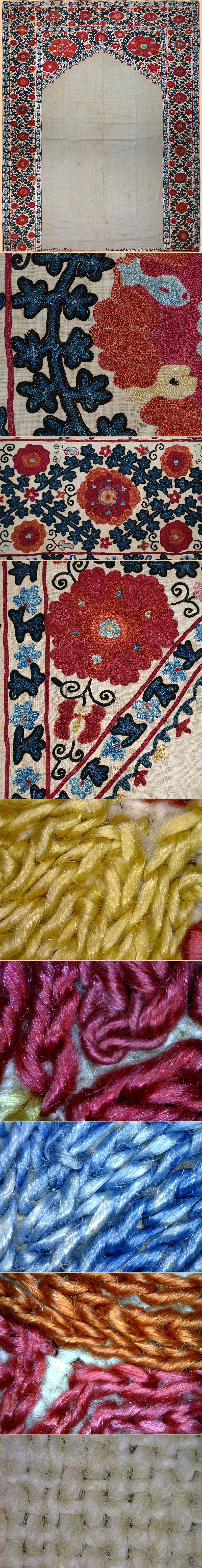 Antique Central Asian Suzani. Silk Embroidery on Cotton.