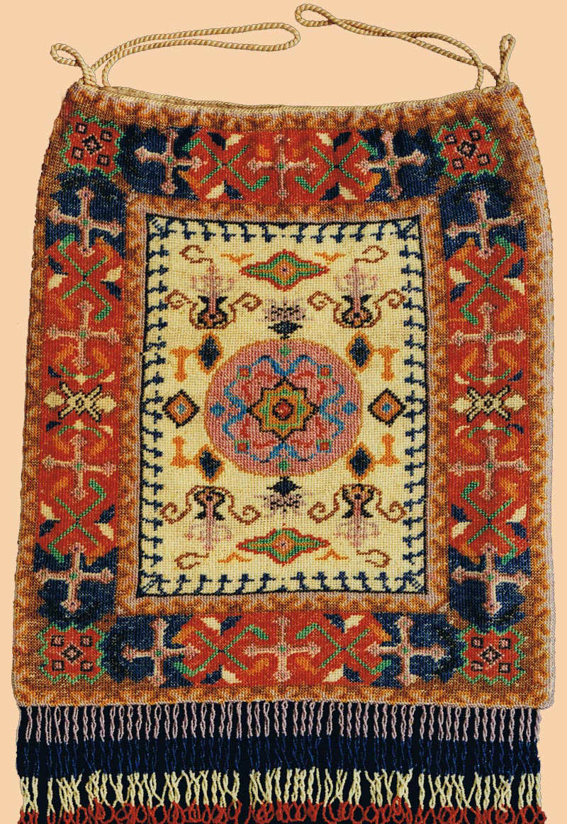Antique Austrian Beaded Bag with Carpet Design Extremely Fine Beaded Work 1800 -1900 A.D Size 12" x 11" Size 27 x 21cm