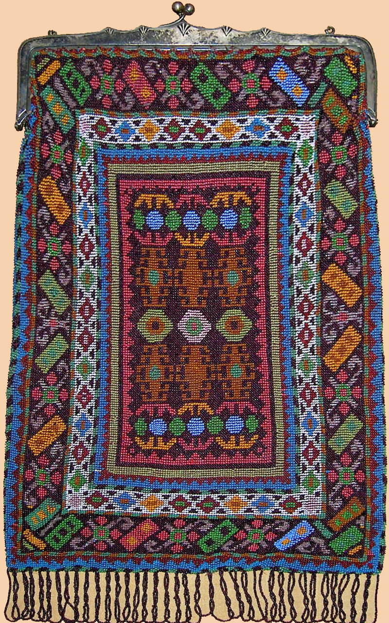 Antique Austrian Beaded Bag with Carpet Design Extremely Fine Beaded Work 1800 -1900 A.D Size 14" x 9" Size 37 x 22cm