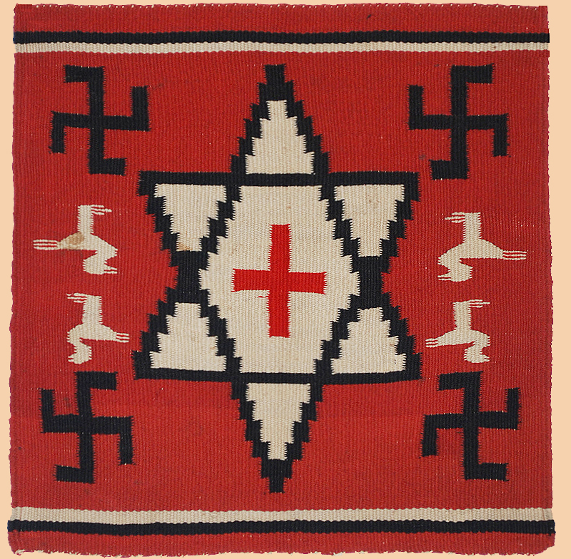 Antique Native American Navajo Blanket with 'good luck' pinwheel symbol which derived from ancient Chinese and Egyptian Civilisations.