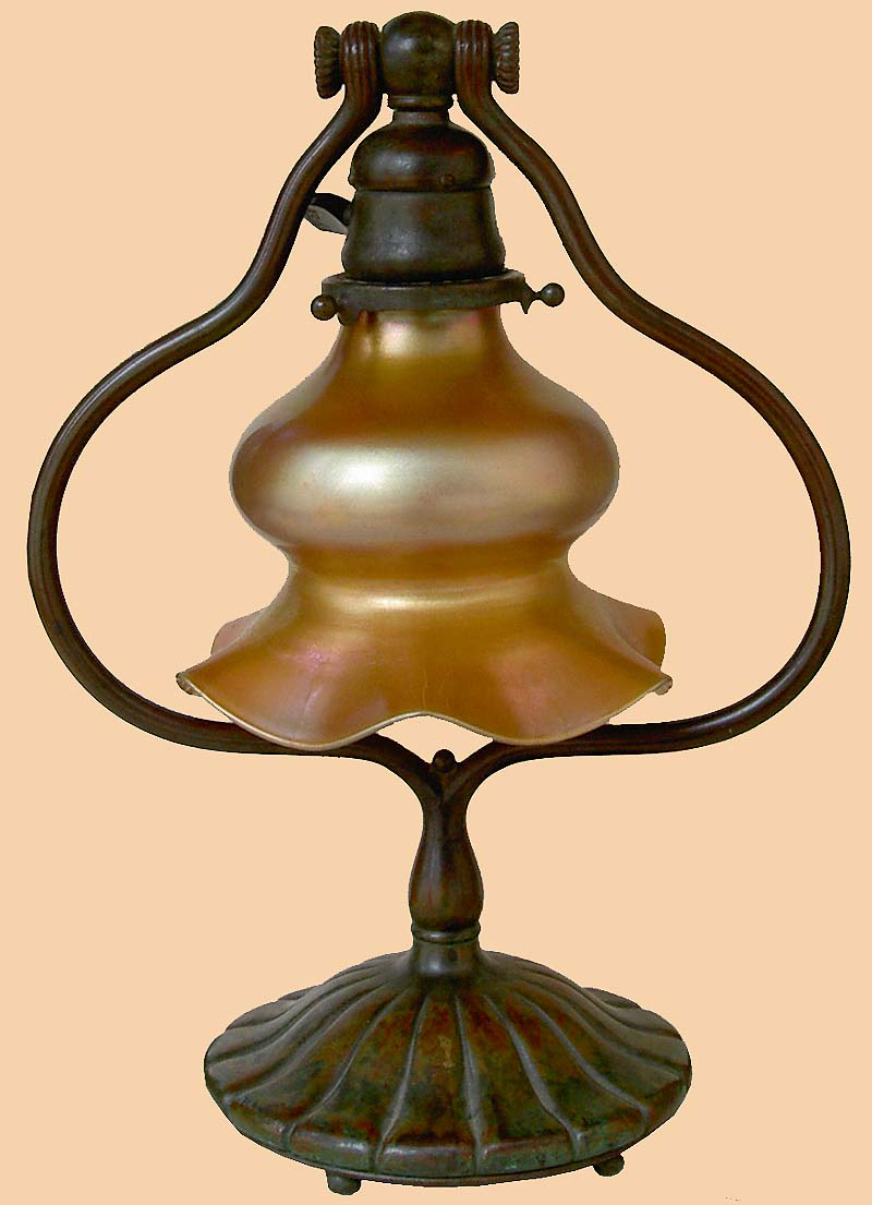 A Tiffany Favrile Glass and Bronze Lamp Signed Tiffany