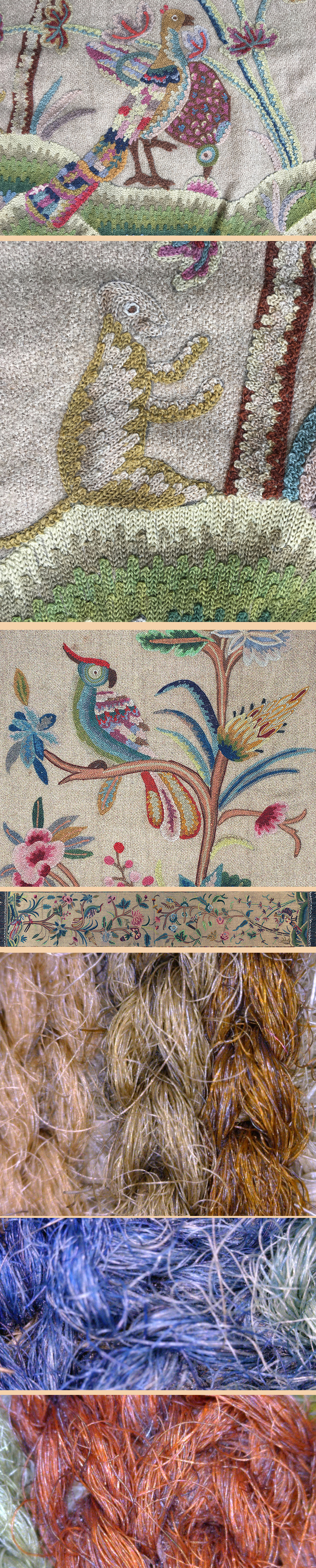 Antique American Textile, Embroidery Wool on Wool Table Runner.