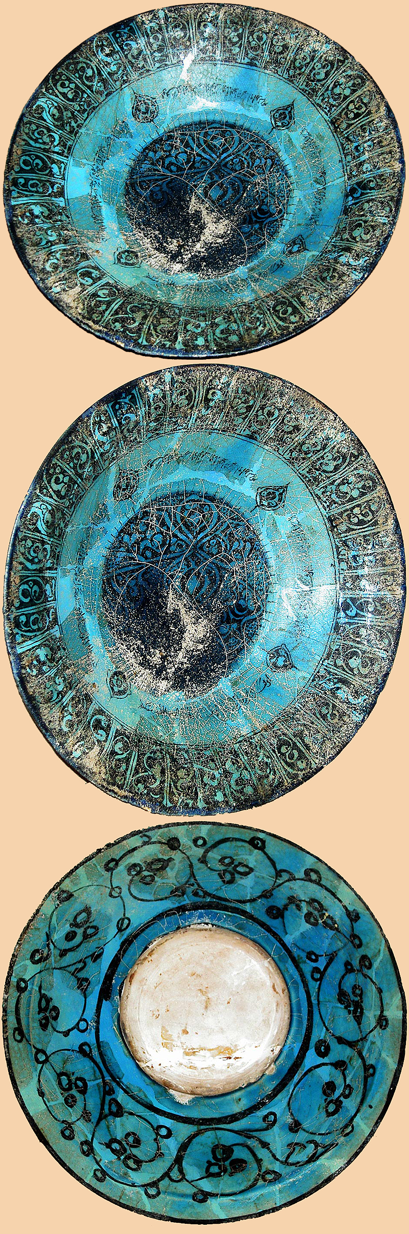 A Large Seljuq Pottery Plate Painted with Kufic Calligraphic