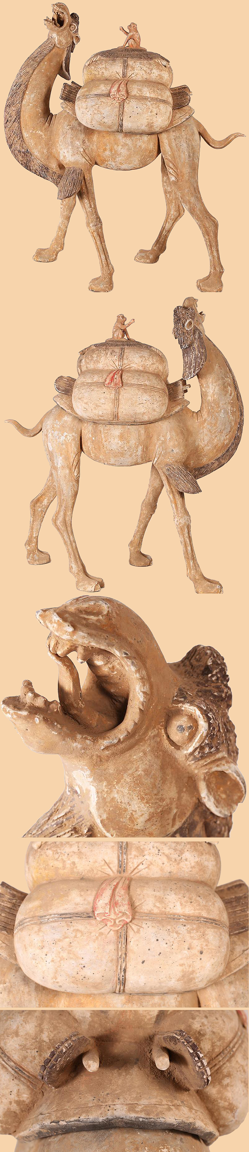 Antique Tang Dynasty Pottery Model of Camel and Monkey Rider