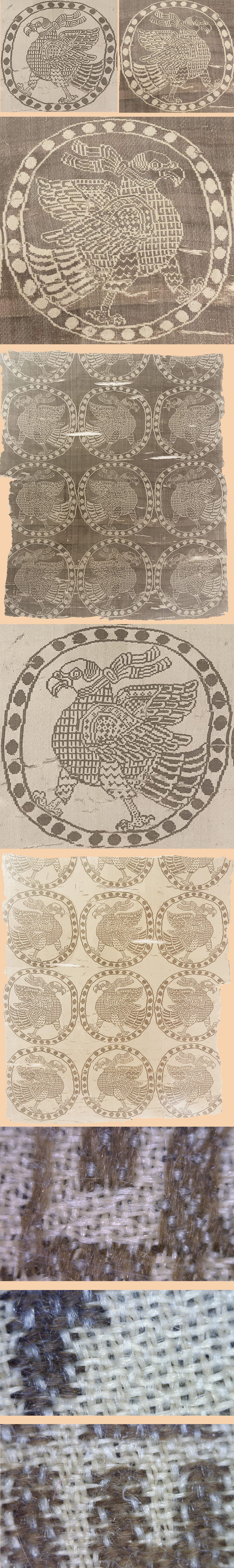 An Important Ancient Persian Sasanian Empire Silk Textile. Roundels Peregrine Falon Design ,