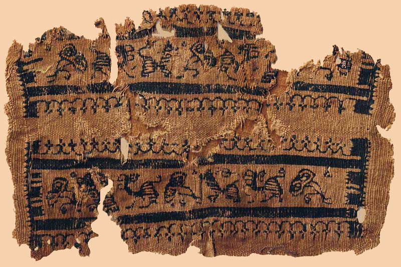 Decoration/Surface: Technique: Slit tapestry with much curved weftings; remains of balanced, 5 spun linen plainweave ground.