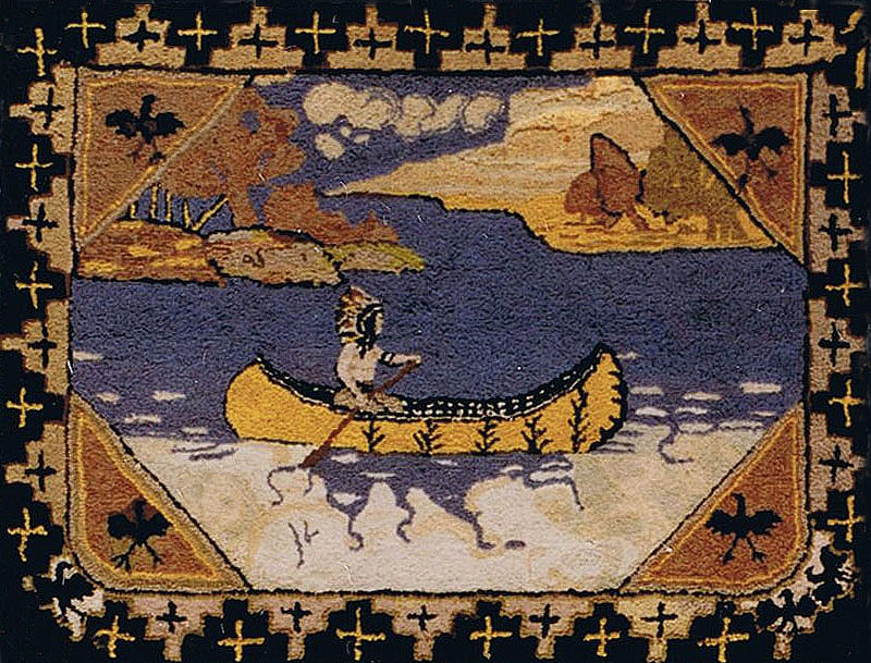 Most old hooked rugs have been repaired in the course of time, and the presence of patches on the back of a rug does not lessen its desirability, that is, if the restoration has been well done with colors and cloth in the same type as the original. Rugs are frequently rebound to cover wear at the edges, and again, rebinding does not reduce a rug's desirability if the restoration has been done well. The only proper way to repair a hole in a hooked rug is to sew a small burlap patch to the base and rehook the missing area. A rug that has been repaired with sewing thread will not hold up if used underfoot. Virtually all old hooked rugs were worked on burlap or homespun linen, whereas hooked rugs on white monk's cloth could be presumed to be modern. Hooked rugs that are used on a hard wood floor should have a thin rubber base to insure longer wear.