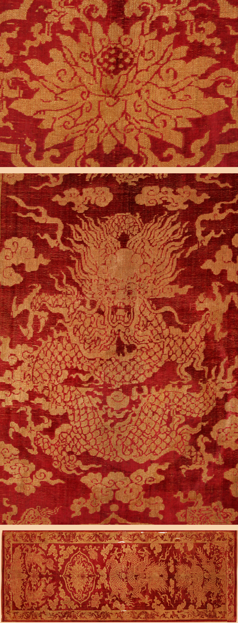 Antique Chinese Silk cut Velet with Gold Thread . 1700-1800 A.D