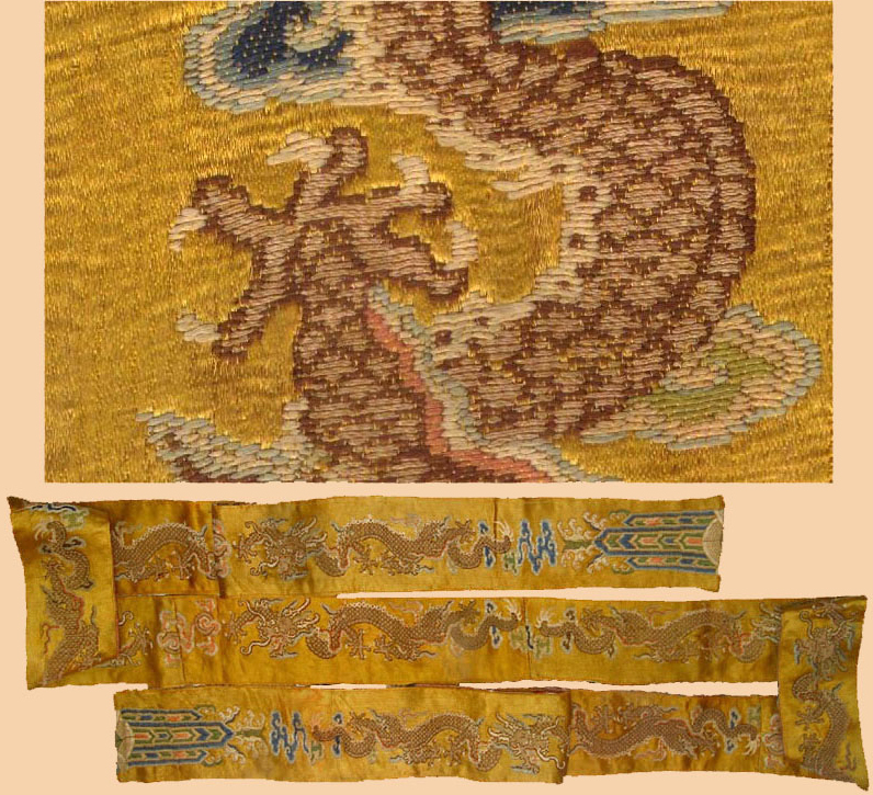 Antique Chinese Textile, Silk Brocade Belt Eight pieces Joined together. Ming Dynasty 1368- 1644 A.D