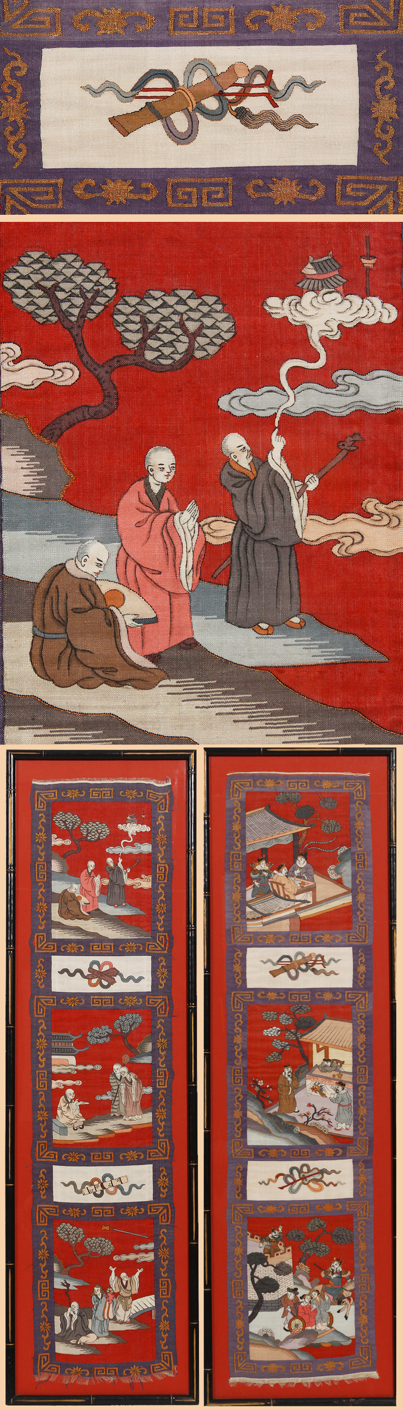 Antique Chinese Silk Kesi Textile We Two Panels 1800-1900 A.D