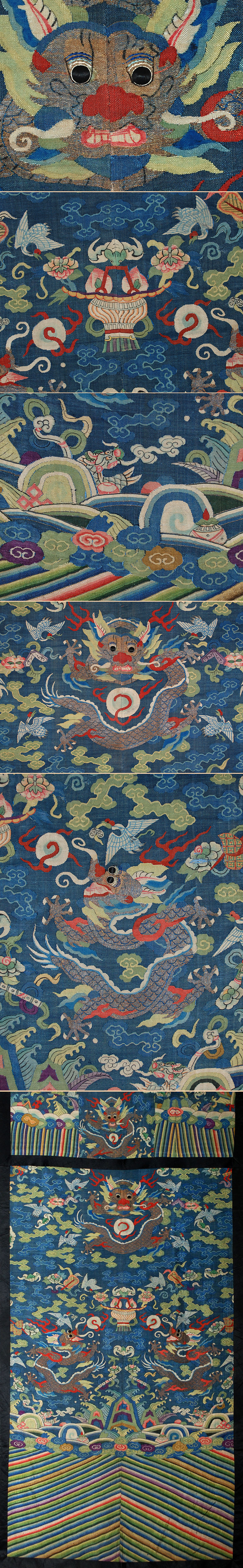 Antique Chinese Kesi Textile panel with gold thread Dragon