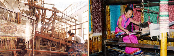 The person sitting at the loom was known as a "thread puller". All he or she had to do was to pull the thread in line in the threading sequence, corresponding to commands entered into a computer keyboard of today. The person sitting on the lower part of the loom was called a "weaver". He or she twined the pattern and wove the materials into brocade using golden or multi colored threads. The woven piece in front of the weaver was just like a computer screen. The weaving technology of the brocade is exceedingly complex and exquisite, and no modern machine has yet been able to replace the ancient looms.
