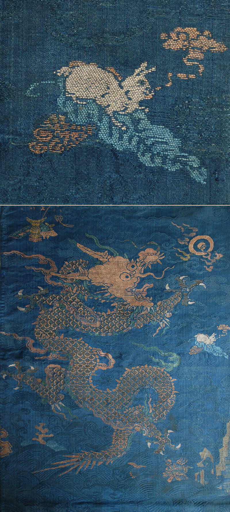 Antique Chinese Ming Dynasty Textile, Silk Brocade with Gold Thread