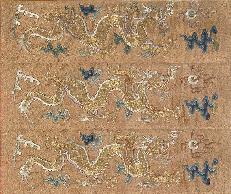 Antique Chinese Silk & Gold Embroidery Dragon.