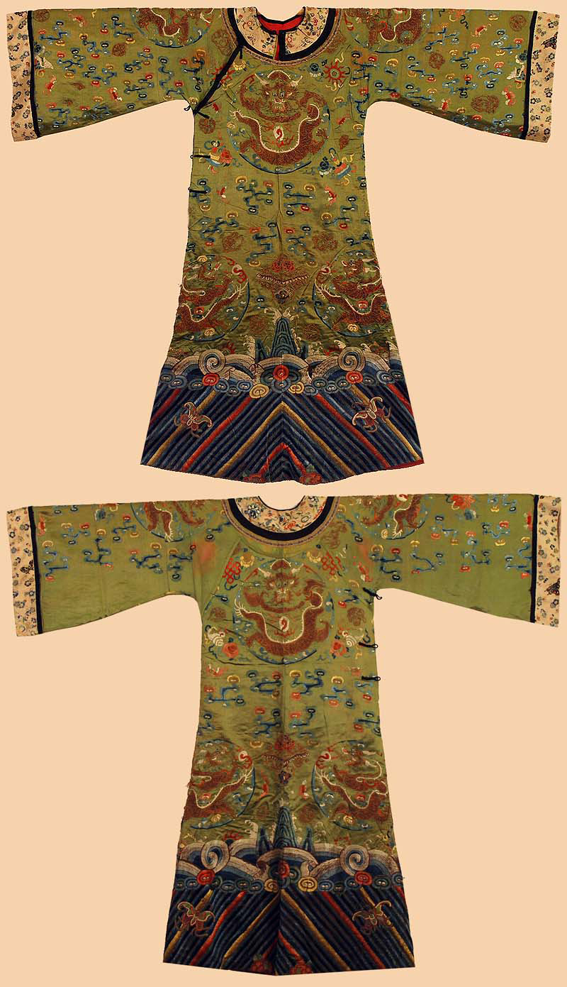 Antique Chinese Robe Silk and gilt Gold metal thread Embroidery, Pattern of dragons