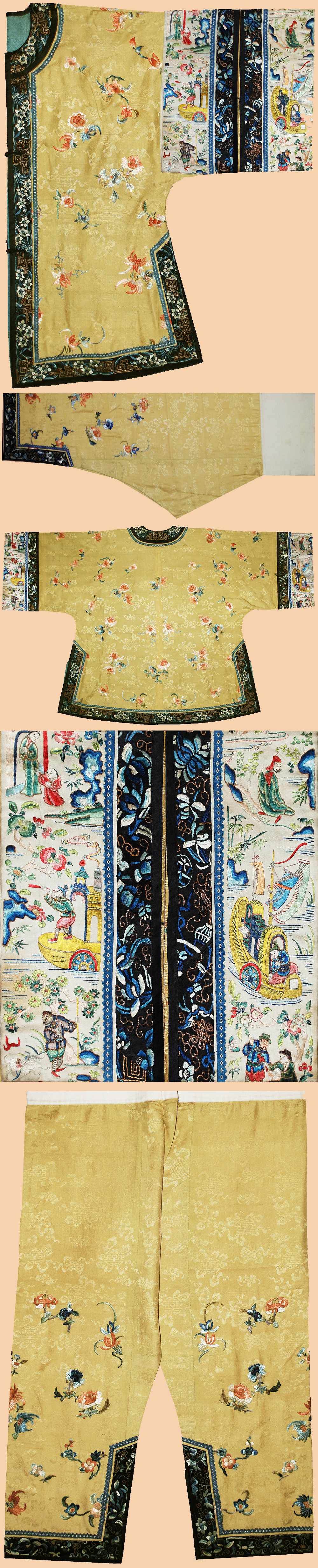 Antique Chinese Qing Dynasty Imperial Silk Embroidery with Gold thread Jacket with Trousers 1750-1800 A.D