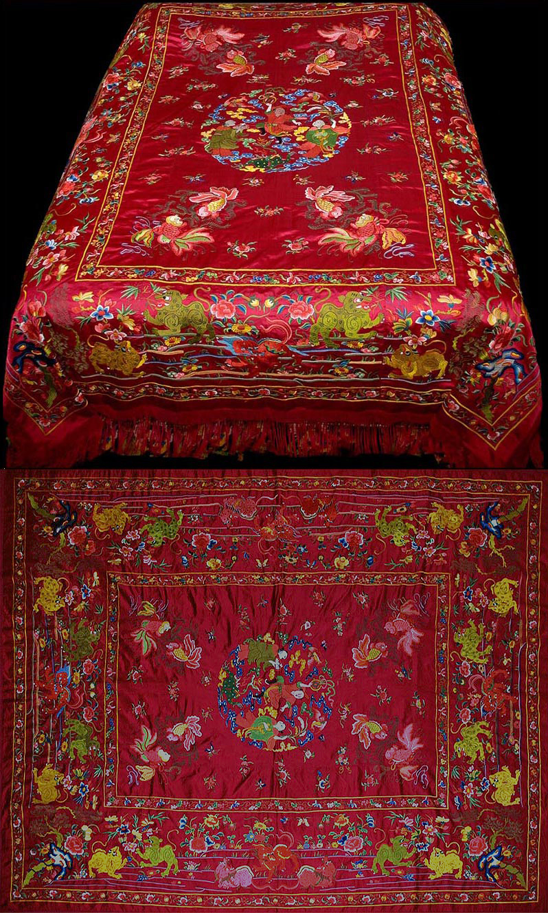 Antique Chinese Imperial Embroidery Bed Cover 1800-1900 A.D