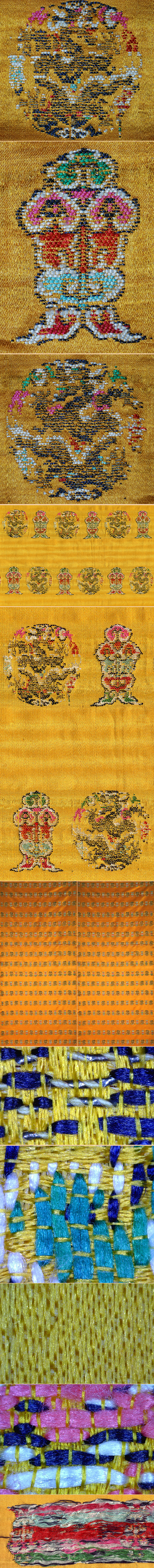 A Pair of Antique Chinese Textile Imperial Silk Brocade with Sliver Thread