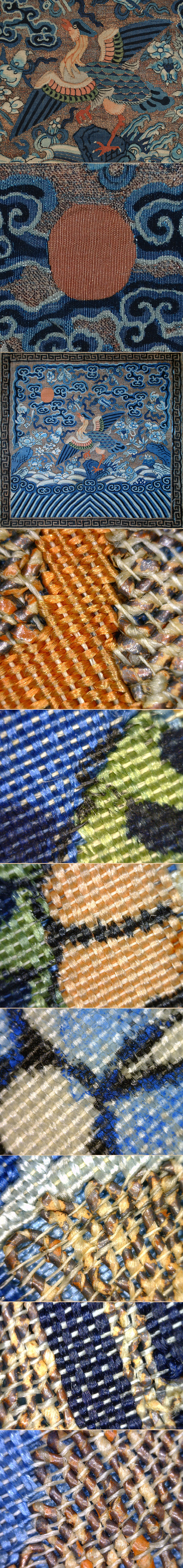 Antique Chinese Silk & Gold Threade Kossu Rank Badge