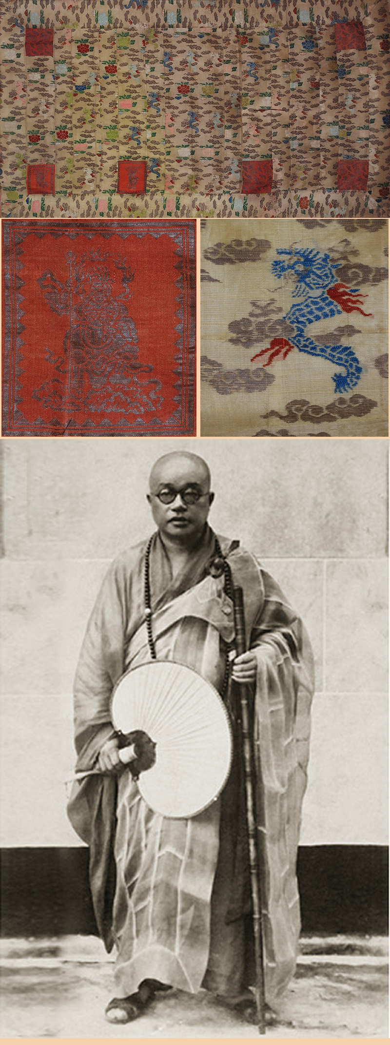 Monks' apparel (kāṣāya). The monks normally used fabrics consisting of a patchwork of different scraps of cloth as a sign of humility; these therefore provide valuable insights into the various type of silk cloth and embroidery available at the time