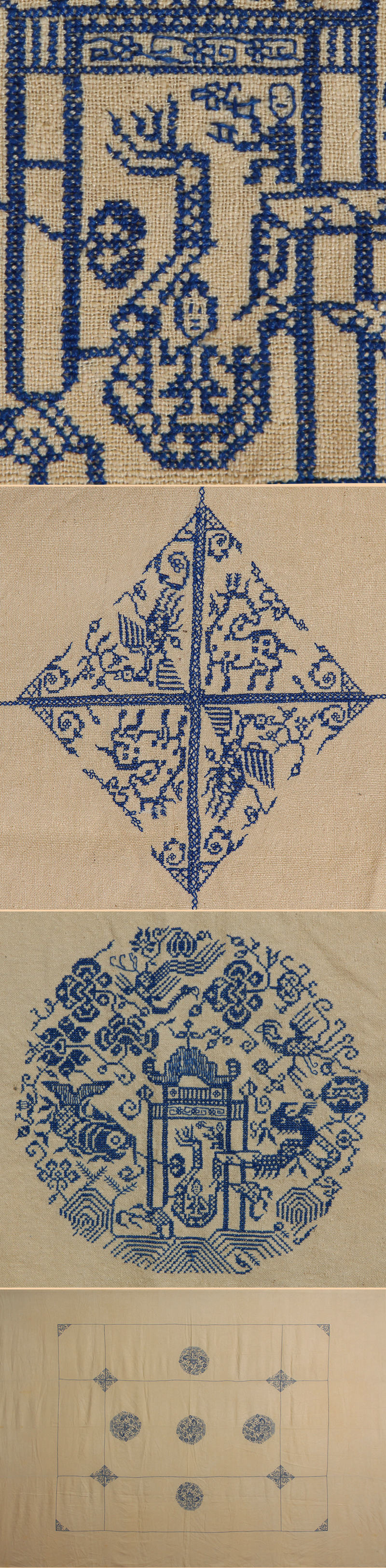 Antique Chinese Fine Wool Bed Cover With Silk Embroidery 1800-1900 A.D