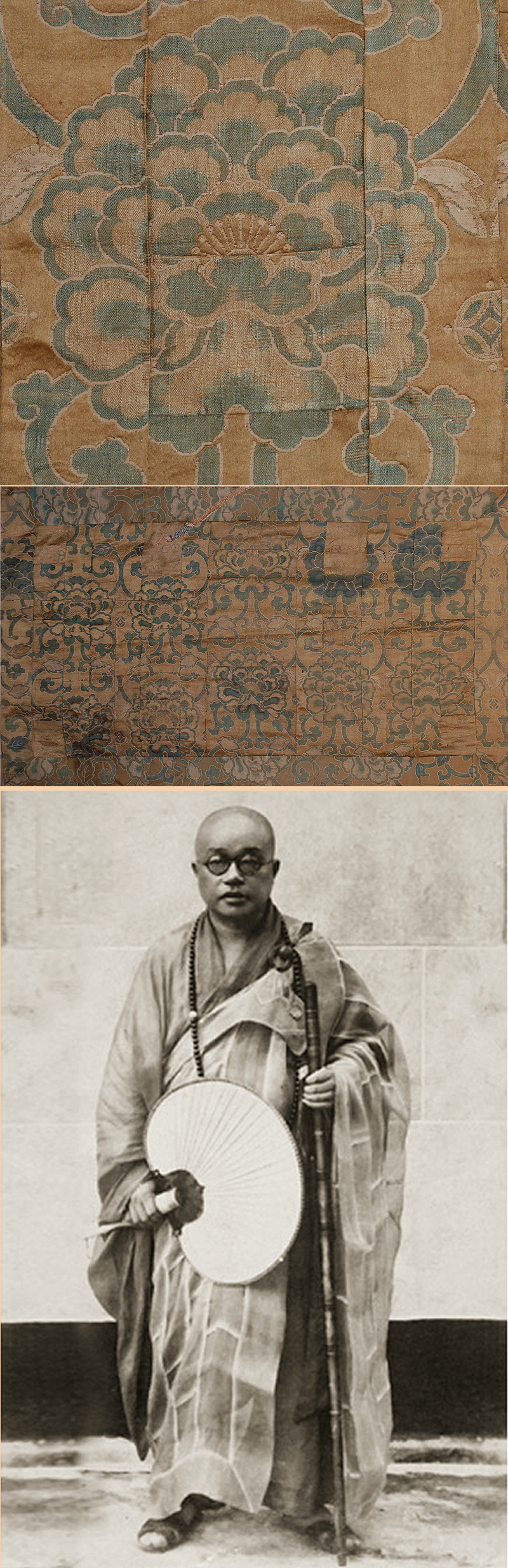 Monks' apparel (kāṣāya). The monks normally used fabrics consisting of a patchwork of different scraps of cloth as a sign of humility; these therefore provide valuable insights into the various type of silk cloth and embroidery available at the time
