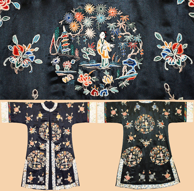 Antique Chinese Silk Embroidery Robe Mid 19th Century