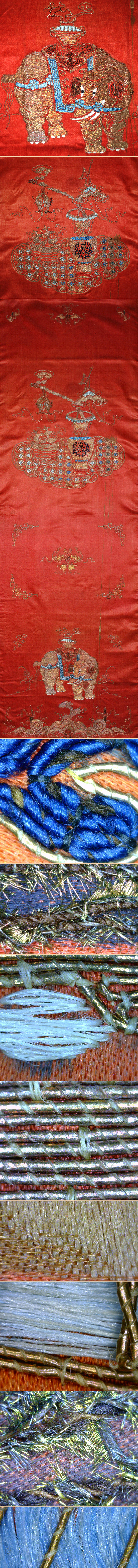 Antique Chinese Silk Gold Embroidery Panel with Peacock Feather Qing Dynasty 1644-1912 A.D Circa 1780