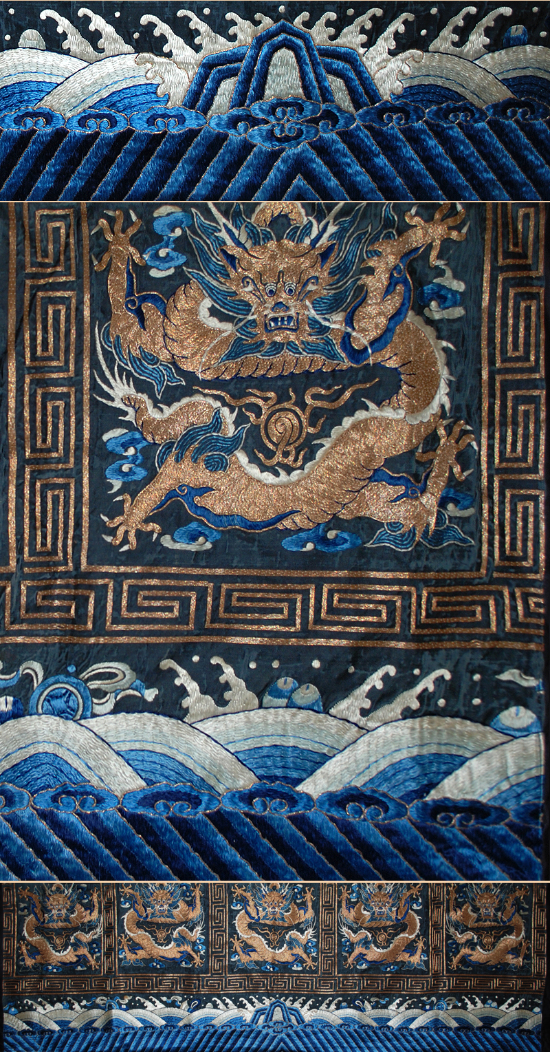 Antique Chinese Qing Dynasty Silk & Gold Embroidery