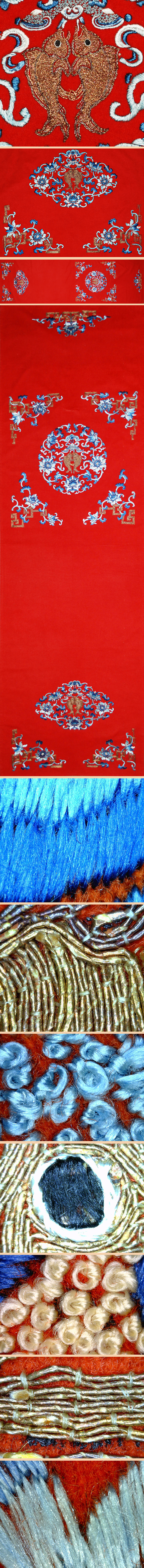 Antique Chinese Wool Panel with Silk & Gold Embroidery