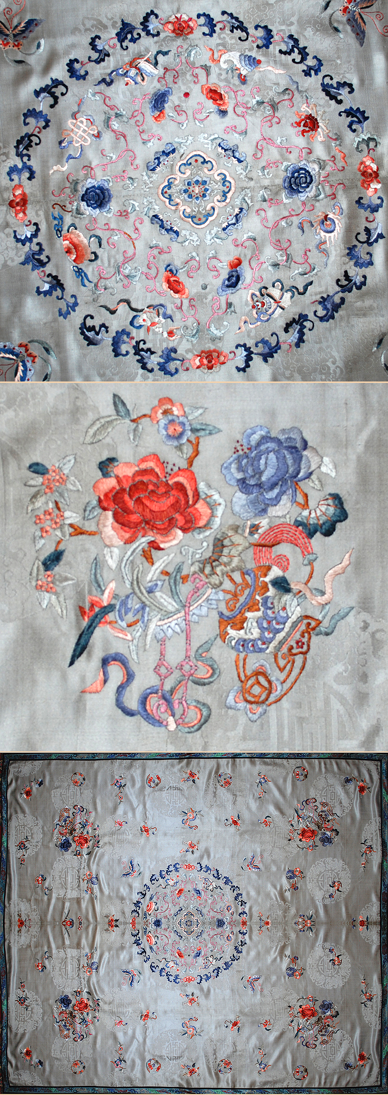 Antique Chinese Silk Embroidery Bed Cover
