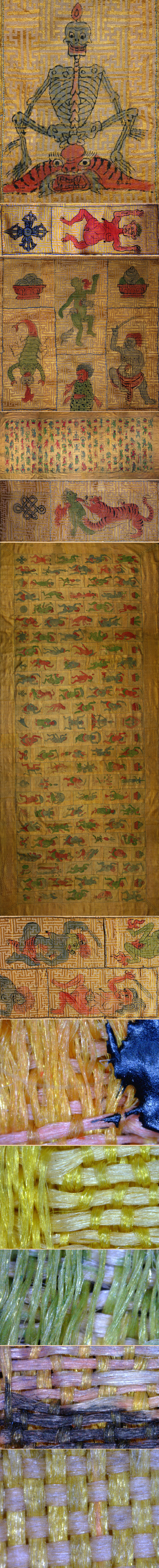 Silk Brocade made of 259 pieces of silk with deferent Buddhist hell subject, hand painting on silk