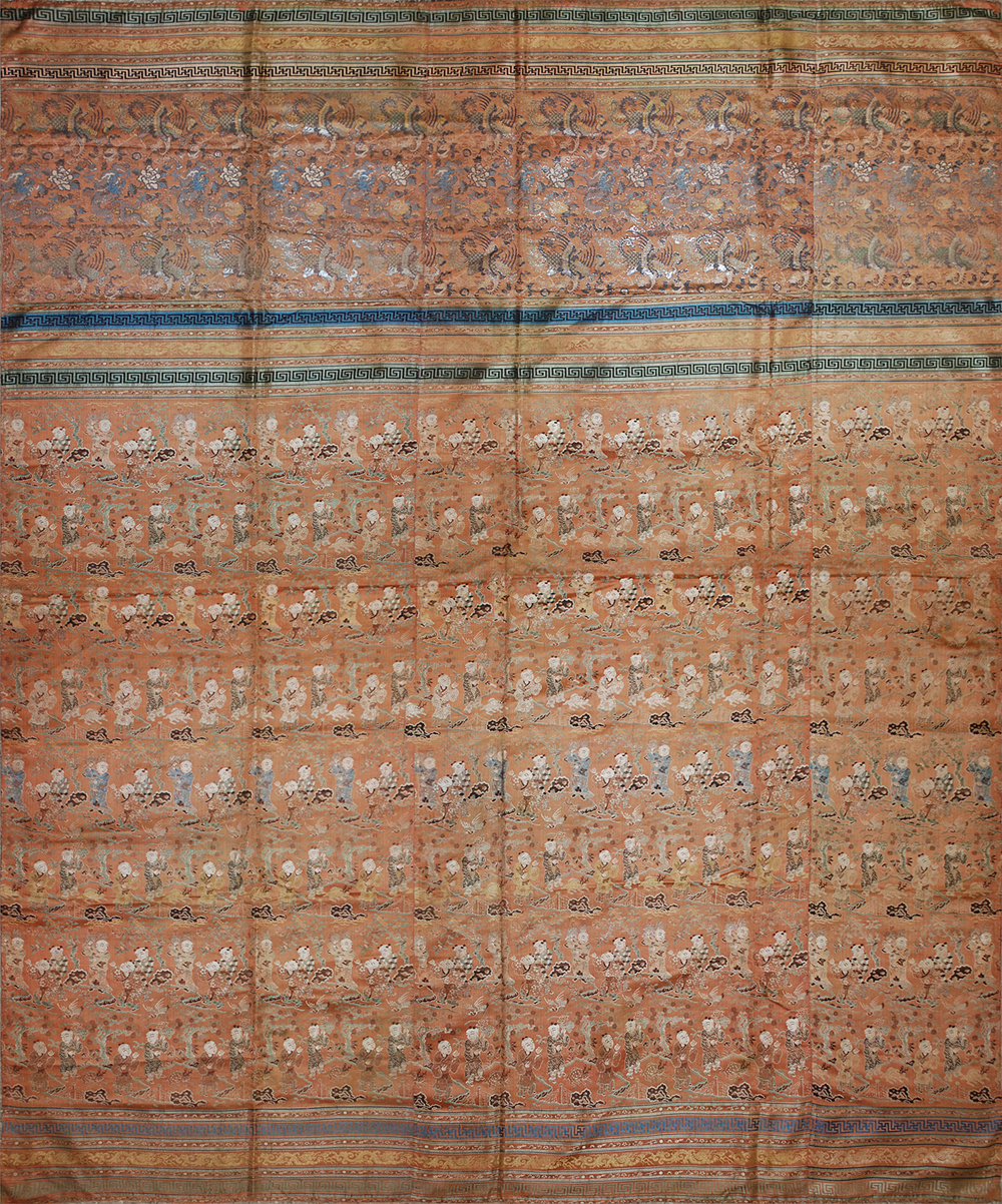 Antique Chinese Textile 100 Boys, Silk brocade with gilt silver threads in excellent condition.