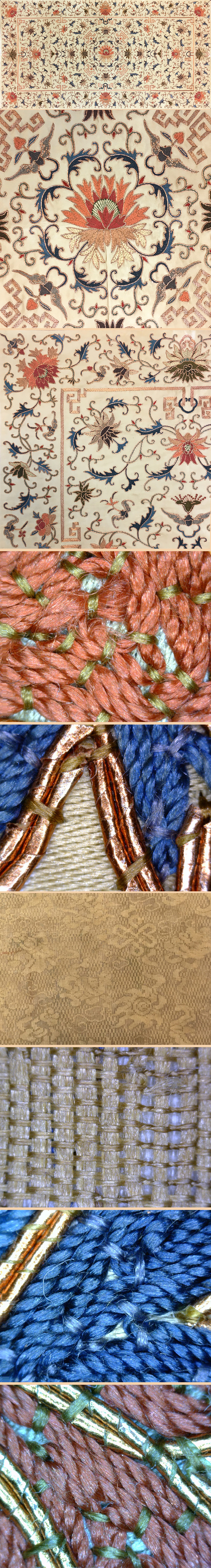 An Chinese Late Qing Dynasty Imperial Silk & Gold Embroidery Couched Seat Cover,