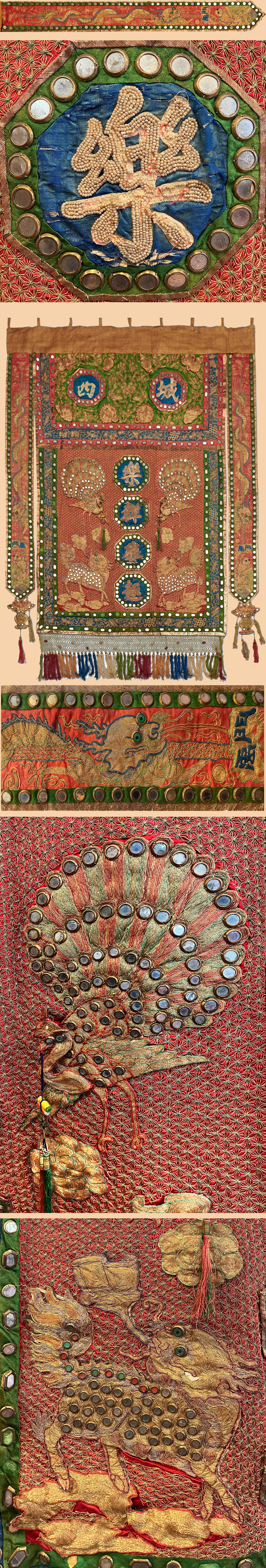 Antique Chinese Textile Silk Embroidery with Gold wall hanging panel