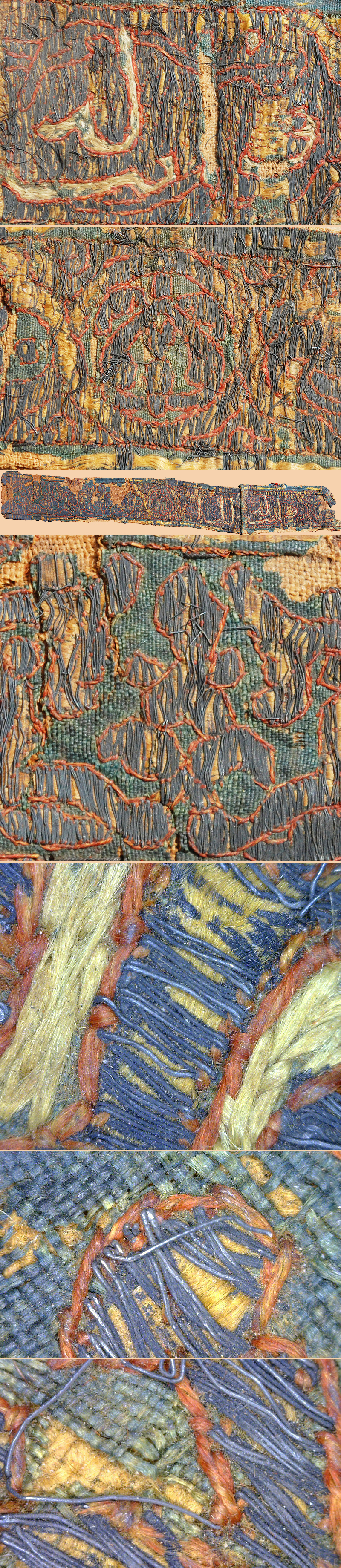 3 Silver (?) wire was applied over the gold embroidery/blue silk base