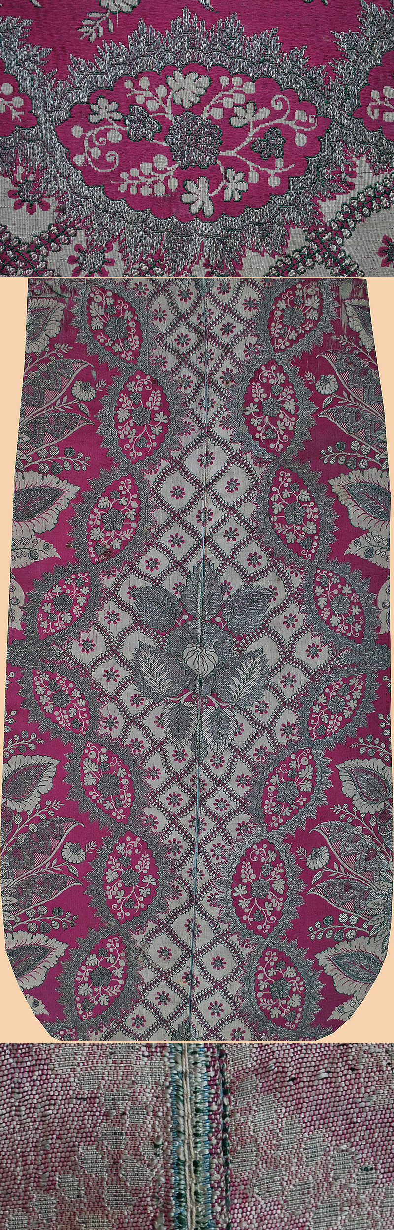 Antique European Silk Brocade with Silver Thread Mid 18th Century