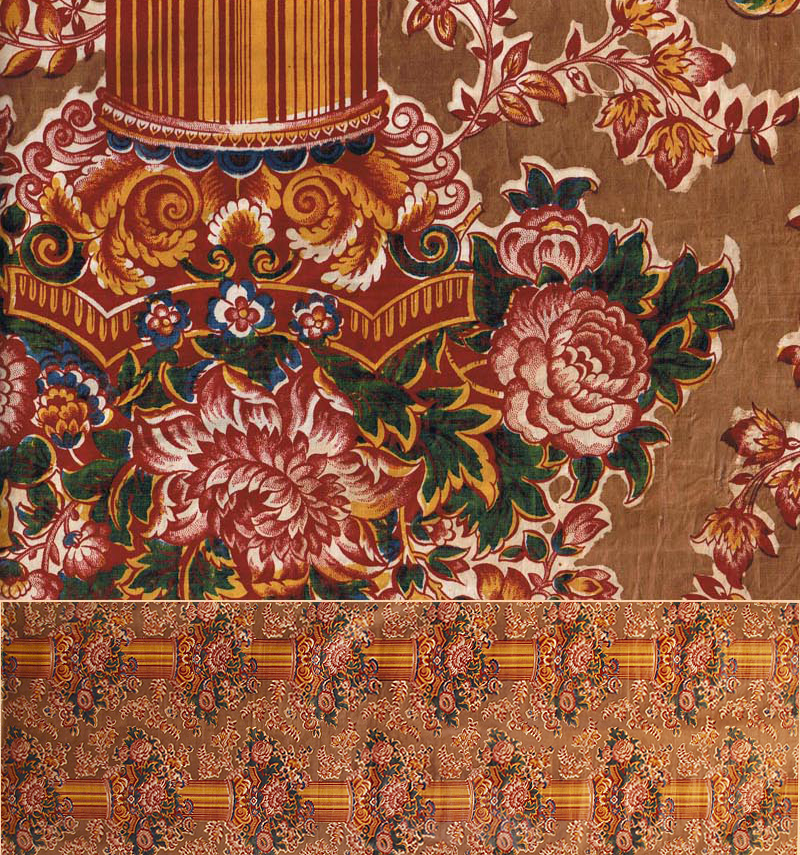 Antique English Textile, Block Print Furnishing Chintz