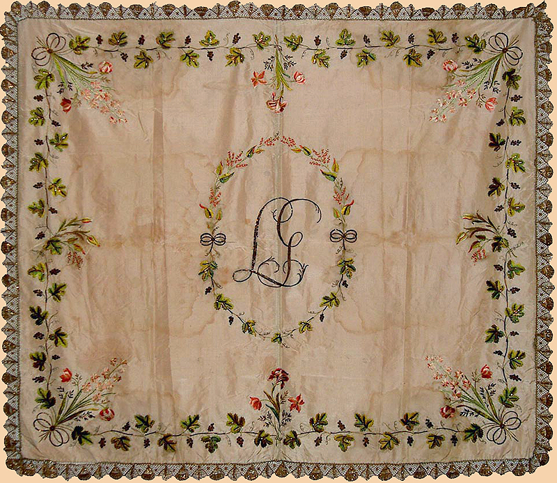 Antique European Silk Embroidery with Silver Thread Mid 18th Century