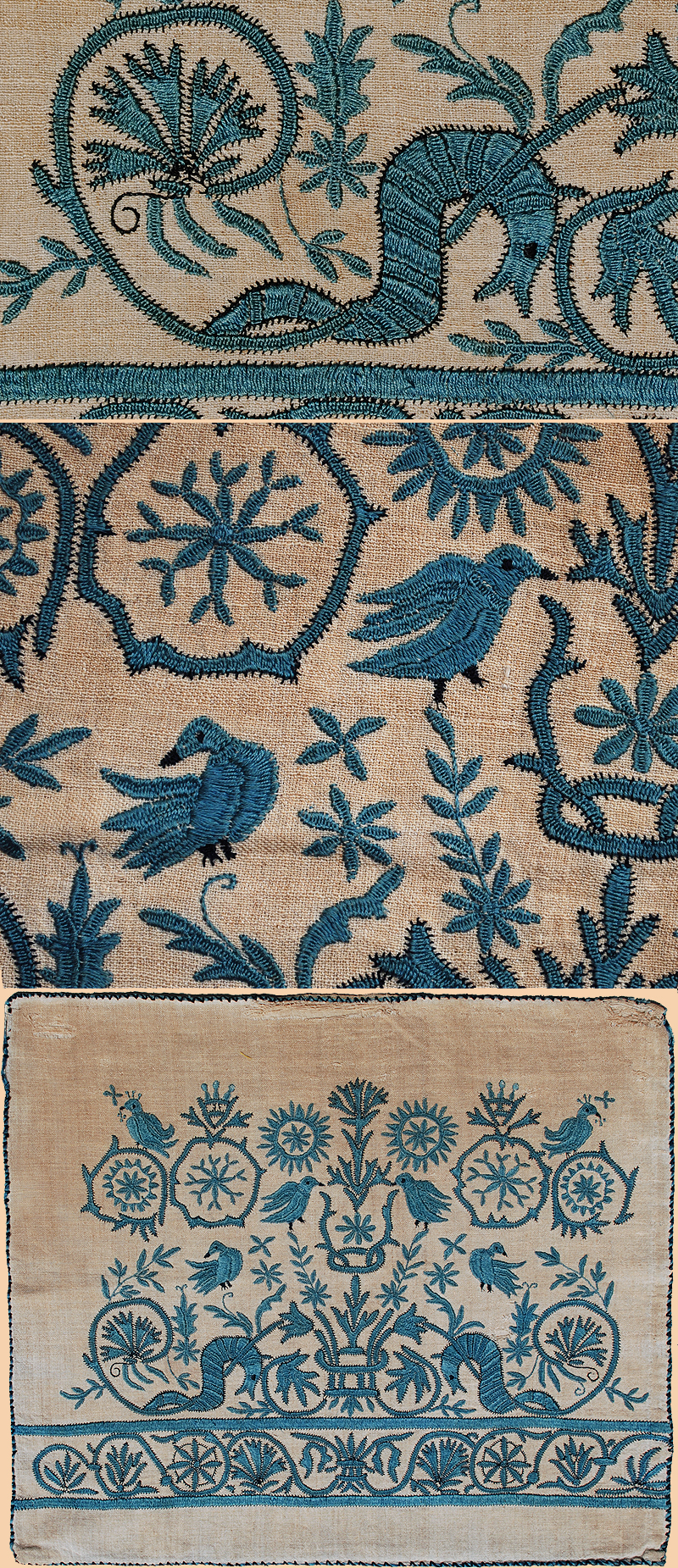 Antique Greek Pillow Cover Silk Embroidery on Linen, Skyros, Northern Sporades, Late 18th Century